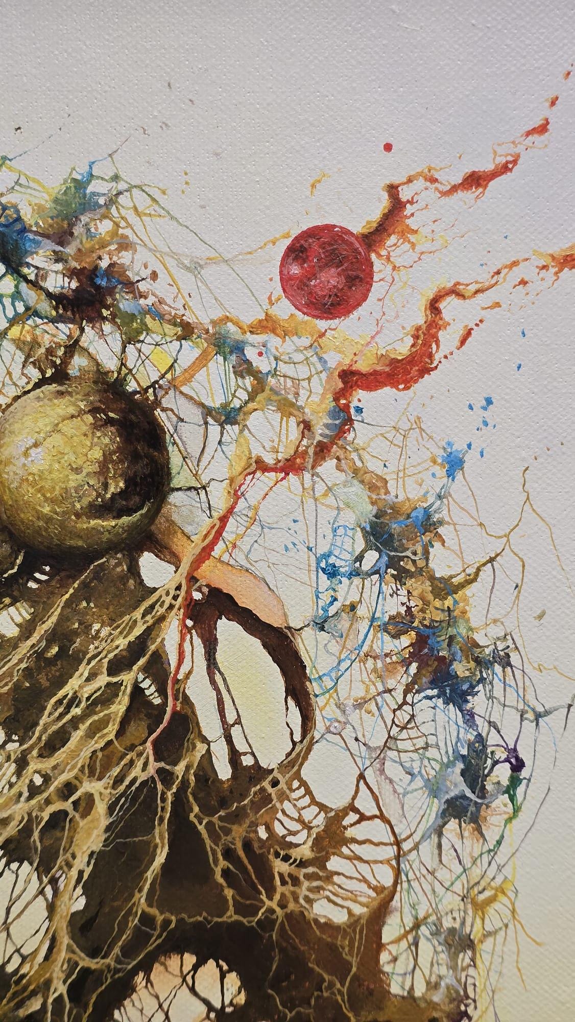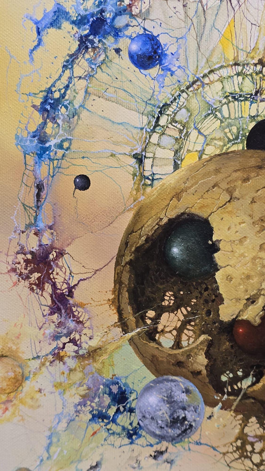 This piece is a reflection on emergence-rising from silence and darkness into light and motion. Rich in detail, abstract expression, and layered emotion.