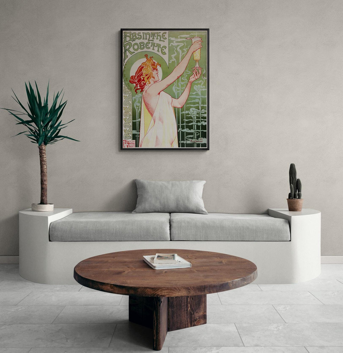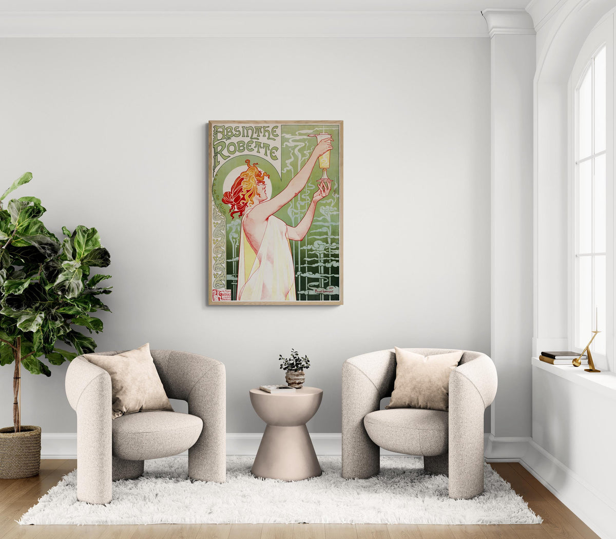 This is an exquisite fine art reproduction of the famous art piece "Absinthe Robette" created by Alphonse Mucha in 1896.