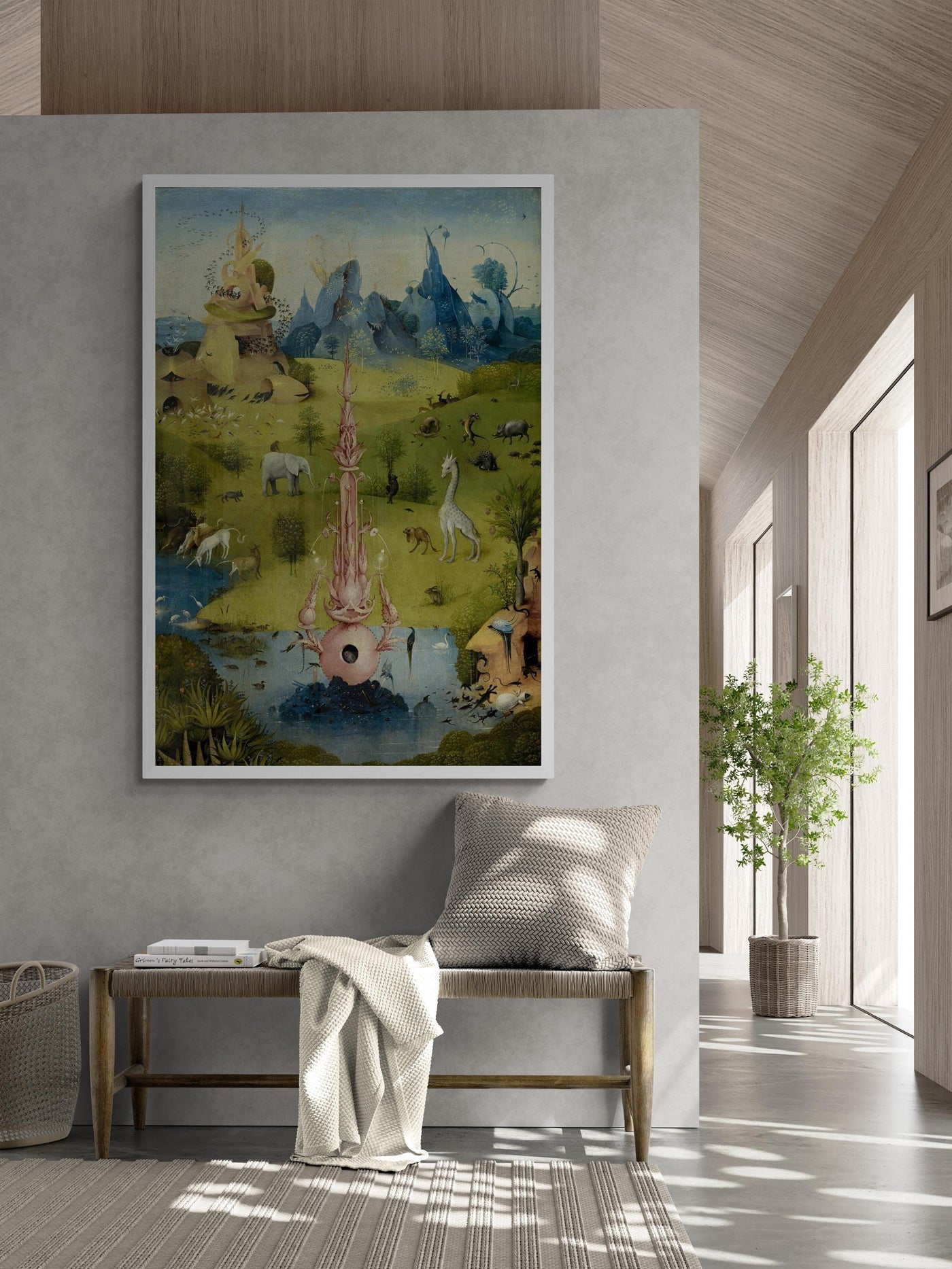 Bosch canvas print reproduction: detail from Garden of Earthly Delights, Fountain of Paradise, Bosch Garden Canvas Print with floating frame