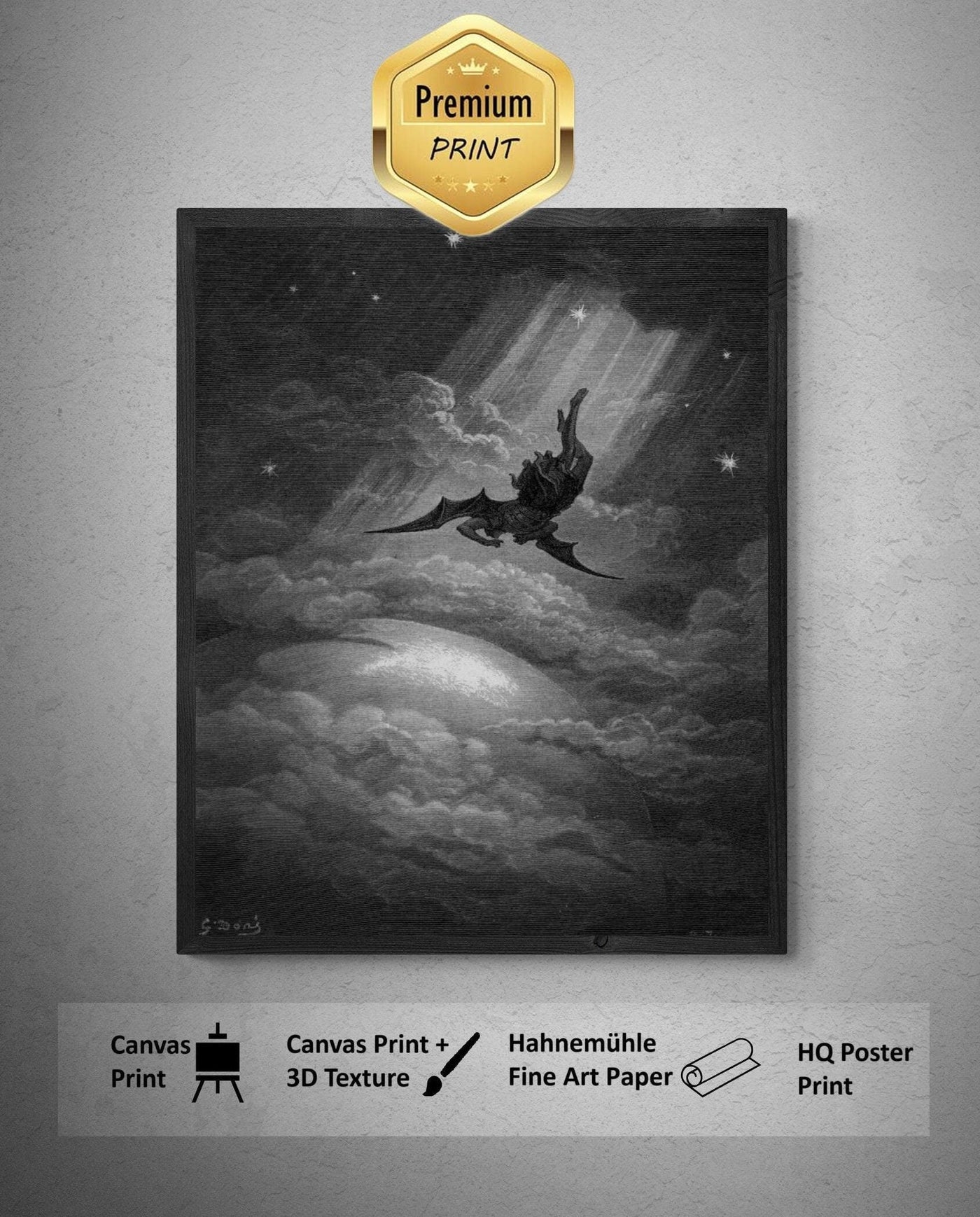 Gustave Doré - Fall of Satan from Paradise Lost | Fine Art Print | Art Paper, Canvas & 3D Hand Finished Premium Texture Print brush strokes