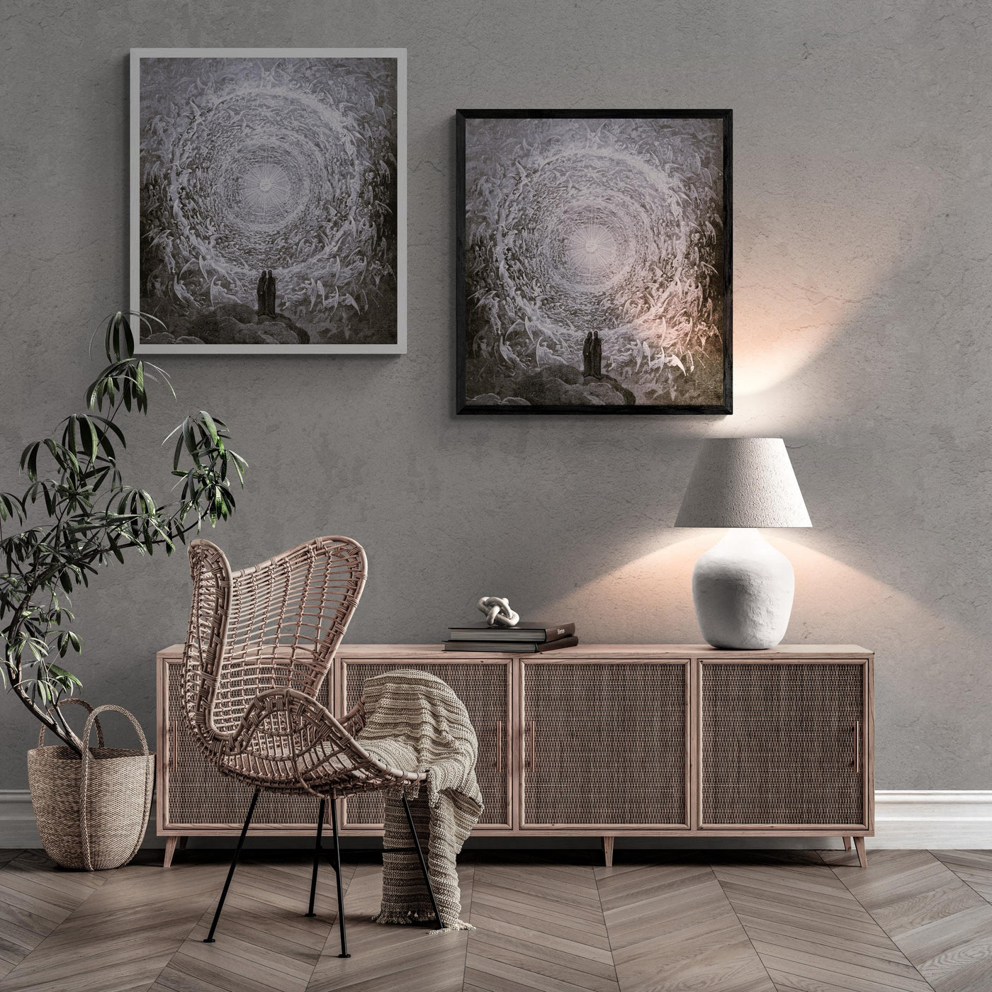 Elevate your space with this exquisite giclee art print of "In the Empyrean" by Gustave Doré. The picture is delivered with black or white floating frame.