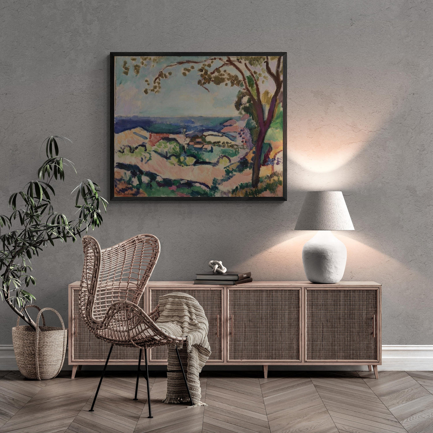 Elevate your space with this exquisite giclee art print of "The Sea Seen from Collioure (1906)" by Henri Matisse. The picture is delivered with black floating frame.