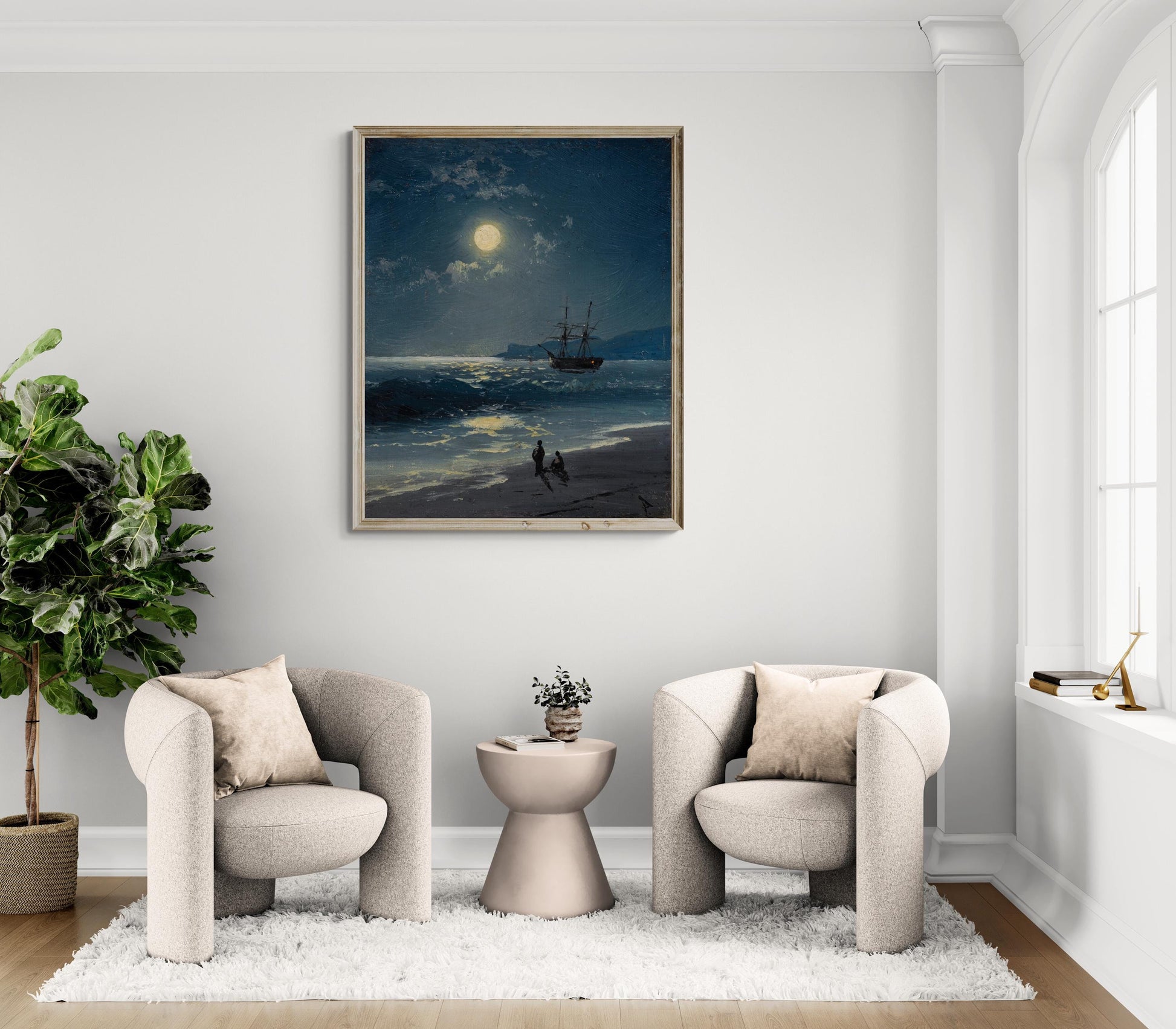 Immerse yourself in the tempestuous beauty of Ivan Aivazovsky's "Sailing ship on clam sea by moonlight"