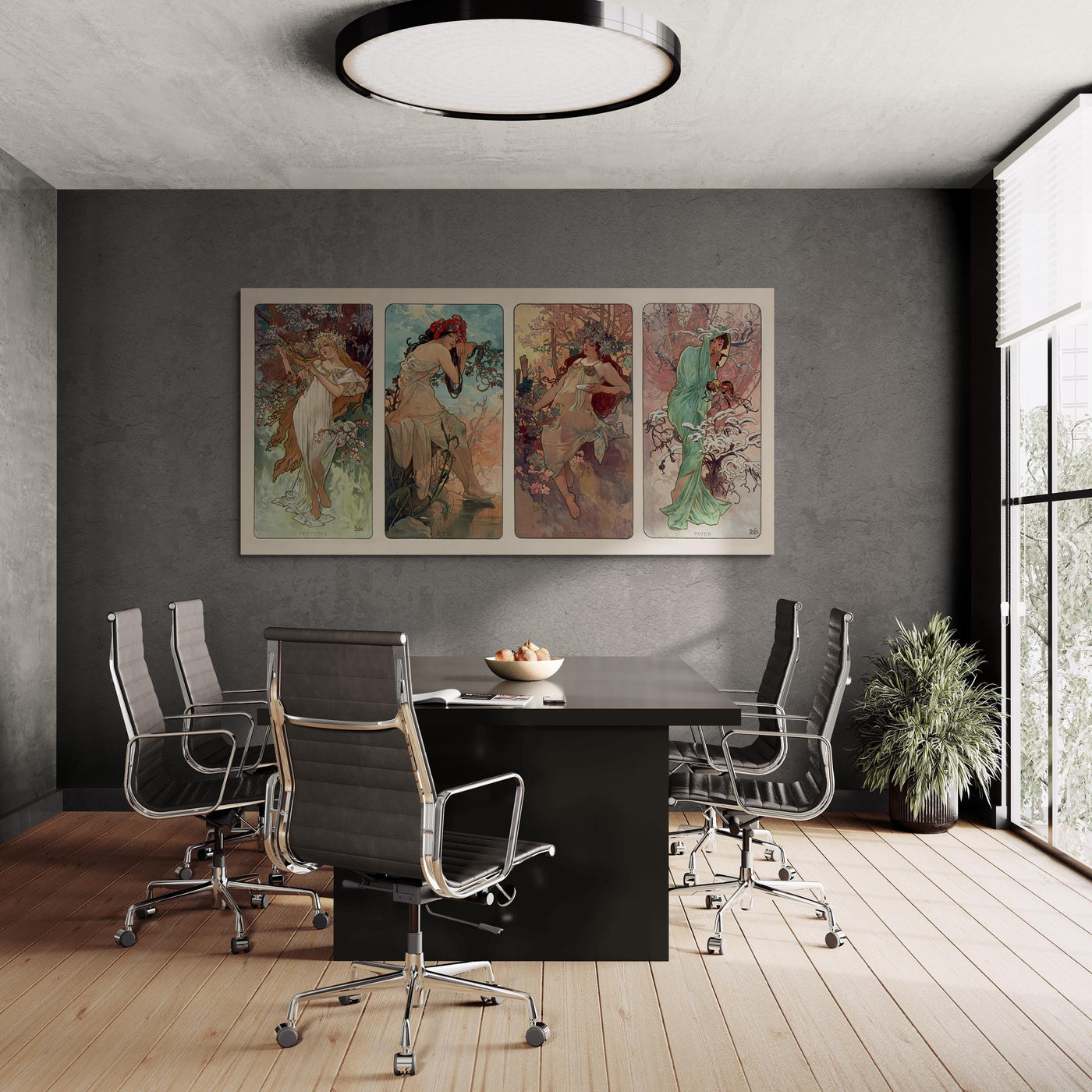 Timeless Art Nouveau: Alfons Mucha - Four Seasons | Fine Art Print | Art Paper, Poster, Canvas or Hand Finished Print with brush strokes
