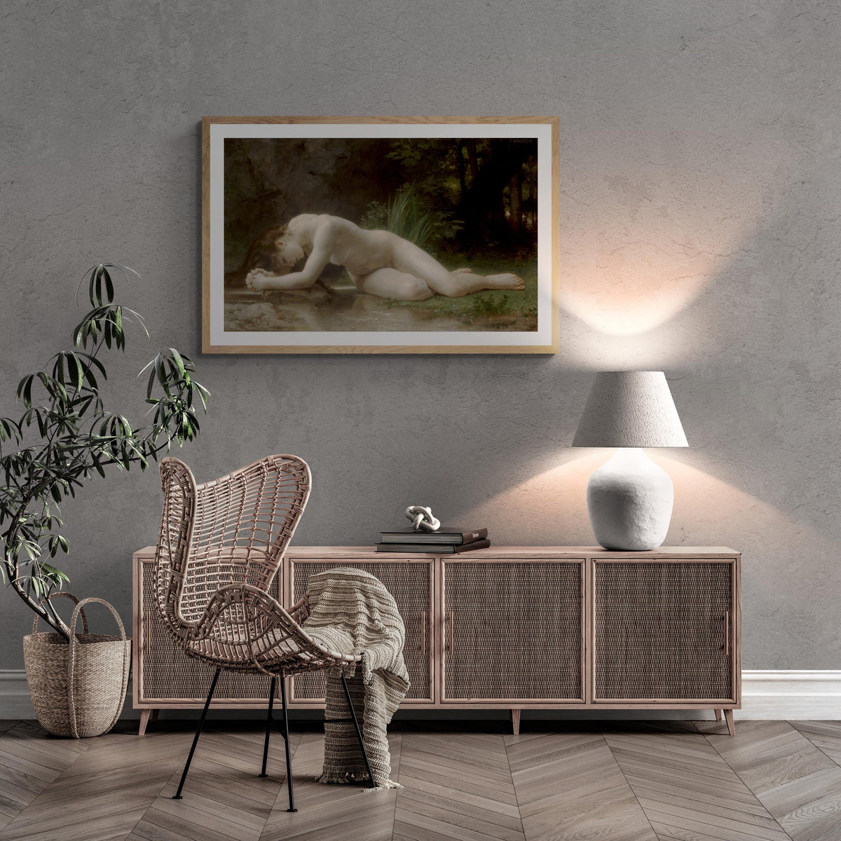 Elevate your space with the ethereal beauty of "Biblis" by William Bouguereau. This 1884 masterpiece, depicting the mythological figure Biblis, is a stunning example of Bouguereau's skill in capturing the human form and emotion. Available in multiple formats, this artwork will bring a touch of classical elegance and grace to any room.